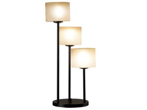 Available in Oil Rubbed Bronze or Brushed Steel finish this versatile lamp has simple smooth elegance, Matrielle's drum shaped glass is ribbed, adding a subtle, contrasting texture.Available at Amazon Check Price Now!